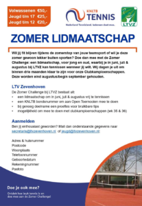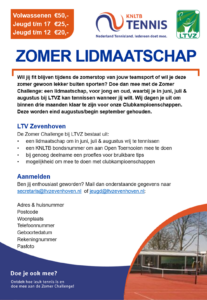 Na het succes van de zomerchallenge vorig jaar (17 deelnemers!) heb je opnieuw de kans om gebruik te maken van een zomerlidmaatschap. Wil je graag buiten sporten en fit blijven deze zomer? Meld je dan (samen met je vrienden/vriendinnen) aan voor de Zomer Challenge bij LTVZ. De Zomer Challenge is een lidmaatschap waarbij je drie …